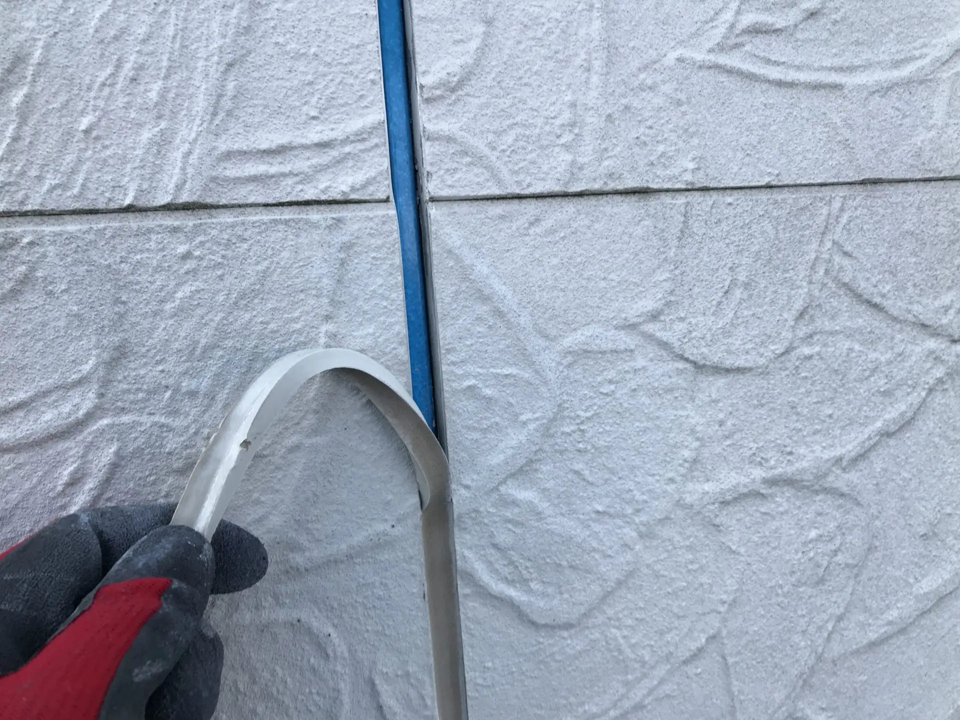 上記画像は、既存の傷んだ目地シールを撤去しているところです。