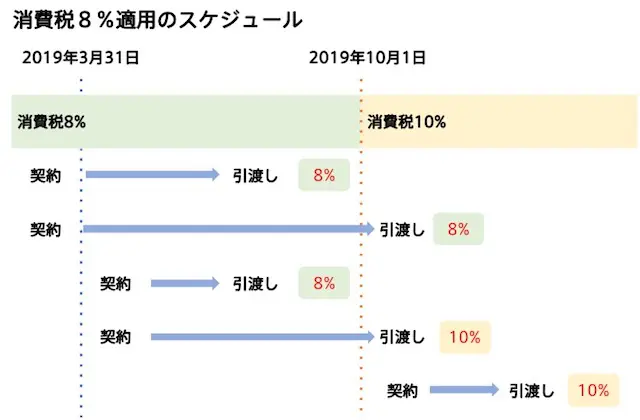 この経過措置とは、請負契約を「2019年3月31日」までに締結すれば、引渡しが2019年10月以降になっても税率8%が適用される」というものです。